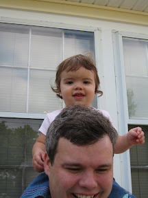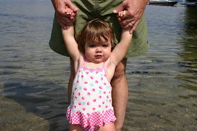 Grace's first official hair cut took place on Aug. 8 around 12:15pm in New London, New Hampshire. Mommy had been tiring all methods to keep Grace's bangs out of her eyes, but I think even Daddy finally became annoyed. So we did it. Don't worry, we didn't touch her crazy curls, just the bangs. Grace sat like a very good girl in Mommy's lap while the lady explained just how to cut baby bangs. It was very good information, but I vowed before Grace was born to never cut her hair.