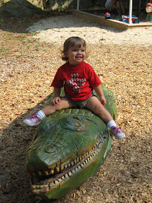 I don't know that I can say for sure that Grace liked the animals. She really studied them, I think she especially liked any where that she could stand and watch the animals by herself. If Grace could really talk and say what her favorite part of the zoo was I suspect it is the slide in the playground. She was definitely annoyed that the small merry go round wasn't running. I had to carry her crying away.