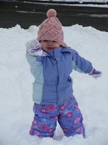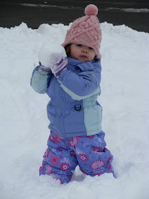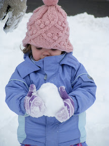 So here are some pictures of what Grace does like to do in' the snow. Throw it. Daddy taught her all about snowballs. She likes to throw them and say, "Baaalllll!!".