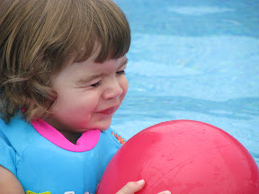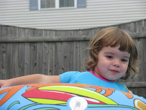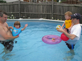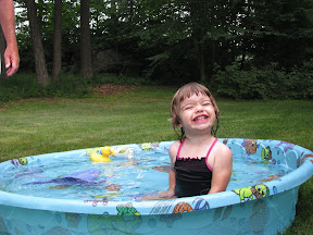 The next day Grace's friends Ian and Allison came over for a pool party. Still not great weather, but good enough to play in the pool. Ian wasn't so sure about the big pool so we moved onto Grace's kiddie pool which we broke soon after we finished filling it, then finished the day with the sprinkler.