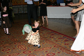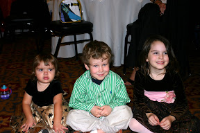 The reception was a blast. Grace met 2 new friends, Aiden and Summer. Grace loved watching them and copiyng them, especially Aiden. Once the dancing started I don't think anyone danced as hard or as long as Aiden, Summer and Grace. It was awesome to watch Grace dance around the floor and try to copy all of Aiden's cool moves. He's quite the dancer. When he spun around on the floor, Grace would lay on the floor. When we was dancing around, Grace would get in front of him and try to dance with him. It was neat to watch. All three rocked it late into the night.