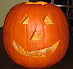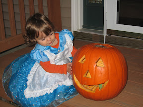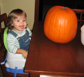 Tuesday we carved our pumpkin, well Mommy carved the pumpkin. Grace lost interest pretty quick and Daddy supervised. I worked hard on this pumpkin so feel free to leave a comment about how awesome it is.