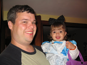 Finally, today, Halloween. Daddy was pretty excited to take Grace out Trick-or-Treating for the first time so I made sure and left work good and early. Good thing, there was an accident on the highway so it took us an hour and fifteen minutes to get home. That's ok, Daddy had supper already. After supper Grace and Daddy got ready.