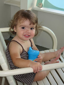 Our first full day of cruising was a day at sea. We started the day with breakfast then took Grace to a baby play time. Unfortunately, there was only one baby there, but I Grace still had a fun time playing with the toys. Then Mommy and Daddy enjoyed a Salsa lesson while Grace hung out with Grandma Gail. After lunch Grace had a nap and Mommy tried, but failed, to win a free cruise playing Bingo.