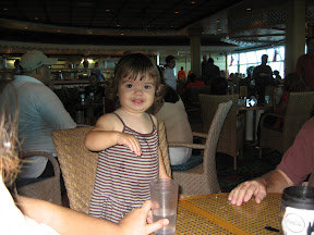 That night was the first formal night in the dinning room. Everybody got all dressed up for dinner. I think Grace's favorite part of the night was went she filled her diaper causing Mommy to have to change her. Being that Mommy was in heels she was having a hard time carrying Grace so she walked like a very good girl over the the elevators. When the doors opened Mommy got on to hold the door for Grace who promptly took off laughing. Needless to say we missed that elevator and had to wait for another.