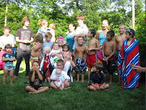The second week Grandpa joined us along with Amy, Ned, Gray and Nolan for part of the week. Needless to say, things were a little louder the second week, but it was well worth it to watch Gray and Nolan playing with Grace. Nolan, the big seven year old, is such a big kid and good cousin that he read lots of stories to Grace. He even took care of reading bedtime stories to her one night. It was pretty awesome to watch. It was great to get to spend some extended time with Gray. It gave him a chance to get used to us and especially Grace. I don't think he entirely knows what to make of her yet. A couple of the nights after dinner I don't know what got into them (not entirely true, one night it was choclate and marshmallows) but Grace and Gray were all over the place. Lots of fun to watch! There appeared to be a game going on that only Grace knew the rules to, but Gray followed anyway. Poor guy kept trying to close one of the bedroom doors, but Grace just kept busting it open.