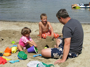 The first week it was just Grace, Daddy, Grandma Gail and me. I don't think I have ever had such a laid back, quiet week up in Sunapee. We spent most of the week making sure we were on the sand and in the water when the sun was shining. Grace learned that Daddy is very good at building sand castles and Daddy learned that Grace is very good at crushing them. Unfortunately we lost a day of sun because Grace was sick. Luckily it was early in the week and her fever only lasted one day.